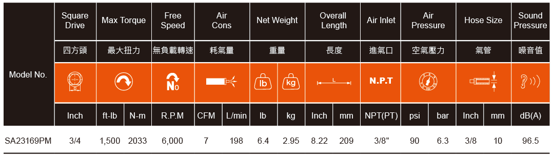 ● Nut-Busting Torque:1,650 ft-lb(2227 Nm)