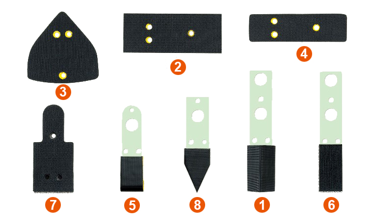 (5) 36x23mm, (6) 48x24mm, (7) 50x41mm, (8) 46x27mm
